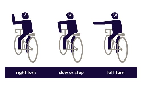 Always be aware of cyclists on the road and make eye contact whenever possible. This will help you both be able to anticipate each other’s next move while remaining safe. Knowing cyclists hand sings helps to anticipate their next move and also when it is safe to pass.
